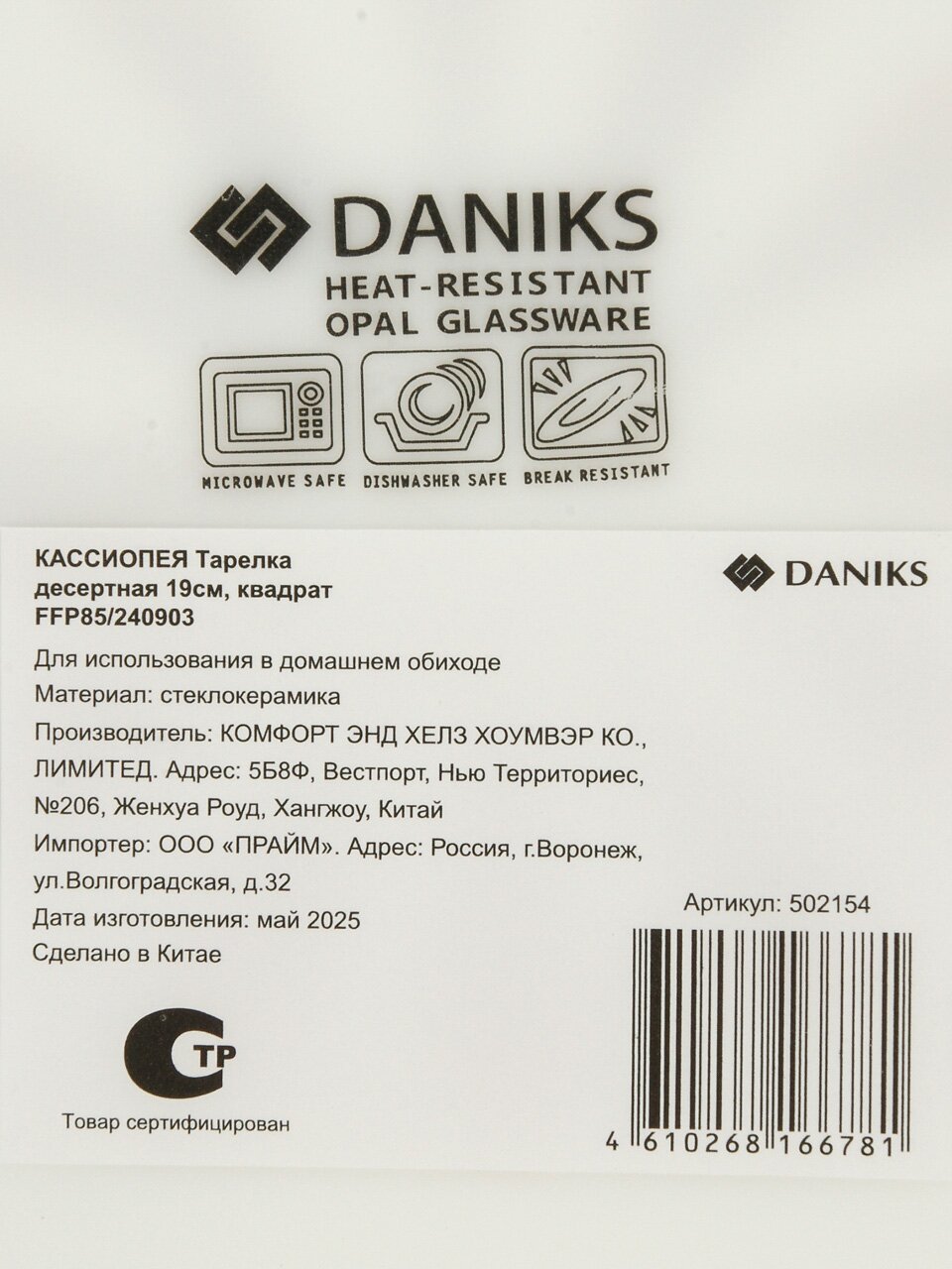 Тарелка стеклокерамика, 19см, квадрат, Кассиопея, Daniks