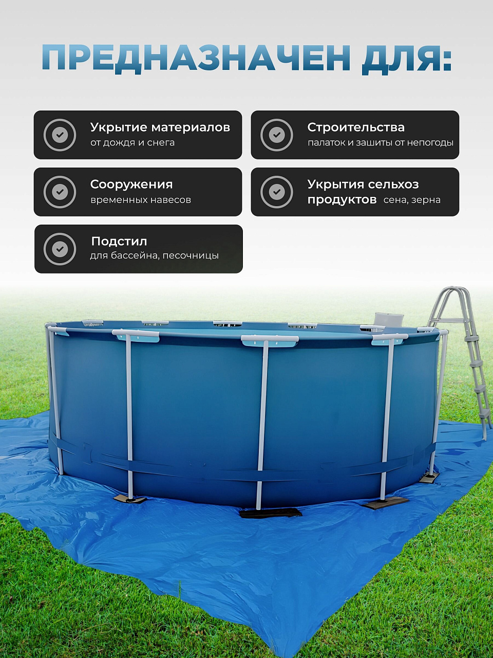 Тент универсальный 600х600 см, 60 г/м² — надежное решение для защиты от дождя, солнца и града. Прочный прямоугольный тент из полиэтилена синего цвета станет незаменимым помощником для дачи, сада, стройки, путешествий и хозяйственных нужд. Благодаря большой площади покрытия и плотности материала 60 г/м², изделие эффективно защищает любые поверхности и объекты от неблагоприятных погодных условий, сохраняя чистоту и сухость даже в непредсказуемую погоду.