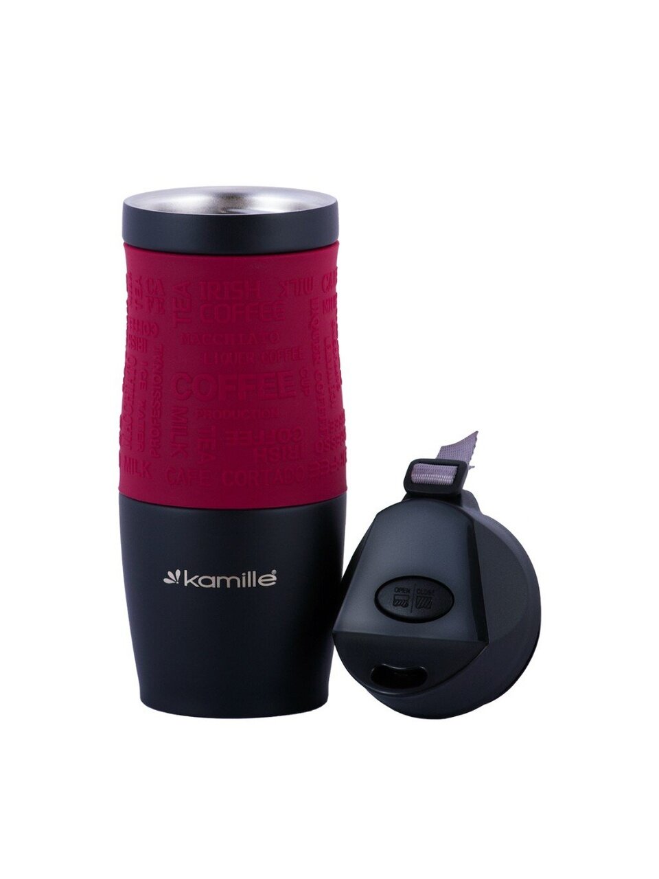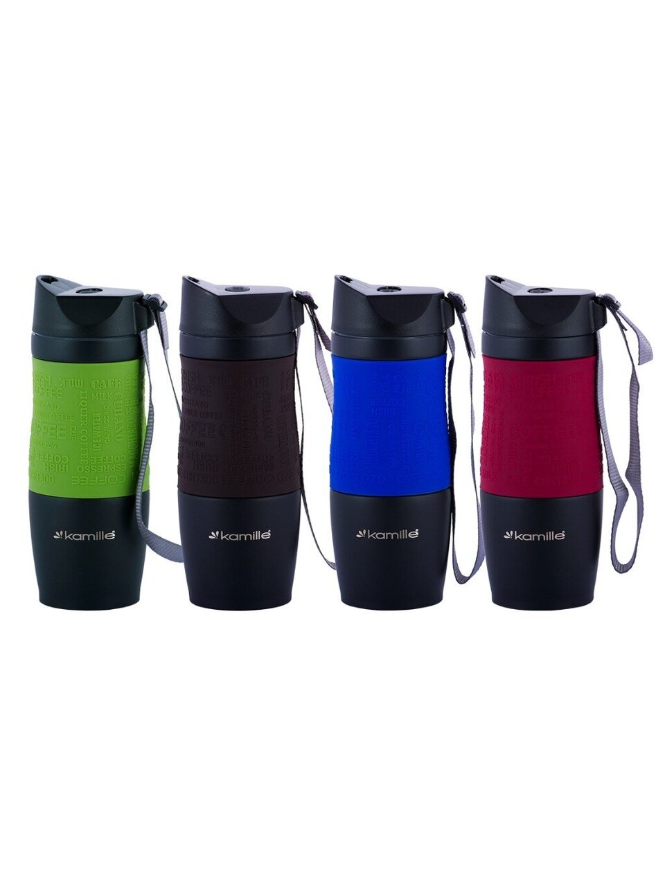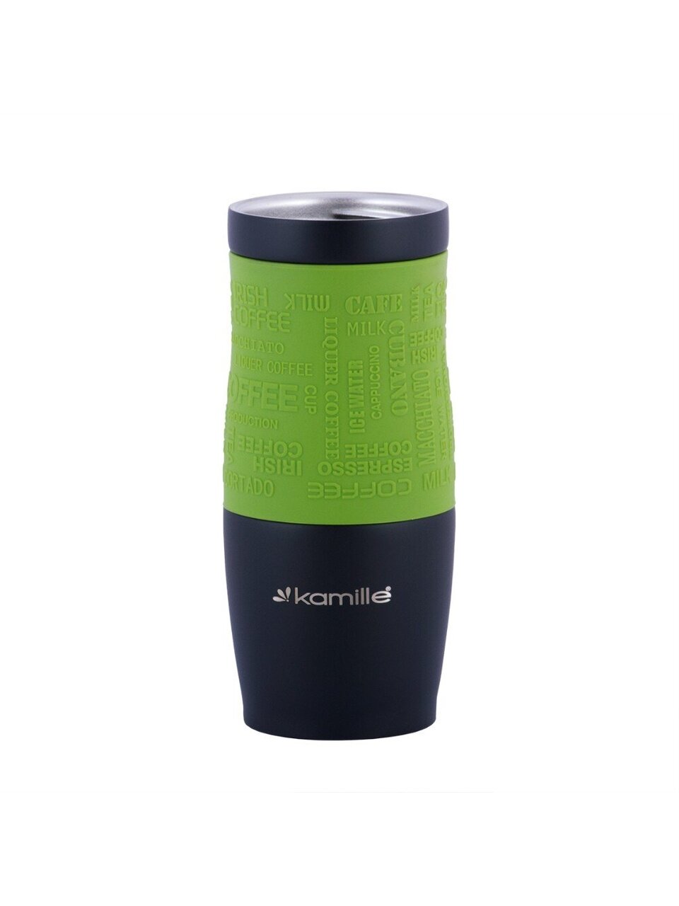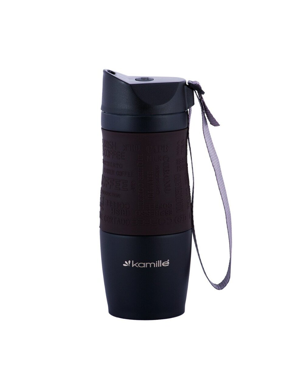 Термокружка Kamille 0.38 л: сохраняет тепло и холод до 24 часов, стальной корпус, удобный ремешок, идеальна для города и похода.