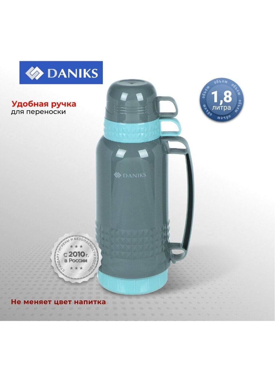 Термос Daniks CA-180 1.8 л: сохраняет тепло и холод до 24 часов, легкий пластиковый корпус и стеклянная колба для чистого вкуса напитков.