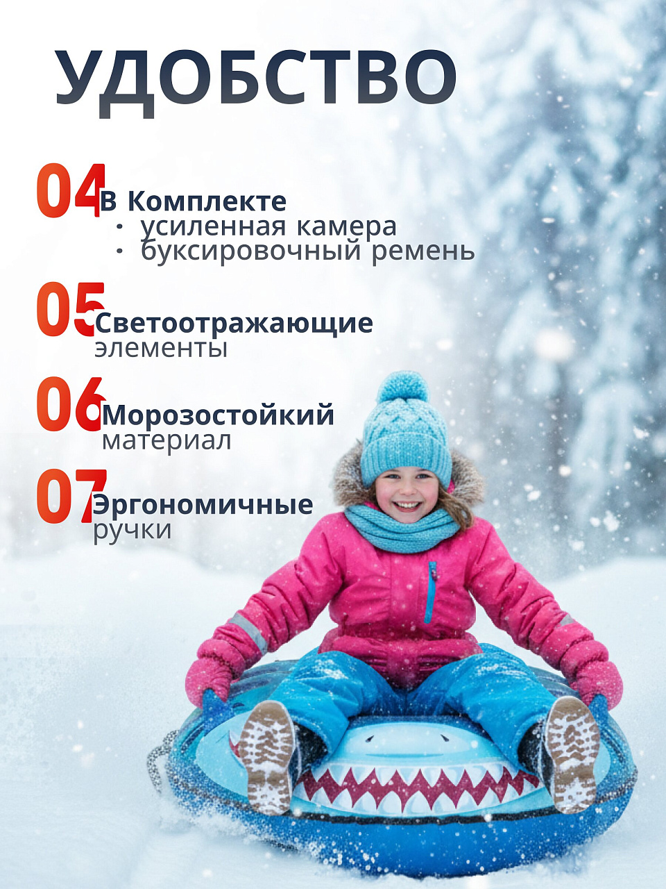 Вы можете приобрести «Санки-ватрушка Nika, с акулой, 85 см, 90 кг, с буксировочным тросом, с ручками, 2 ручки, ТБ3К-85/А2» и другие товары в нашем интернет-магазине в Твери по низким ценам и с бесплатным самовывозом.