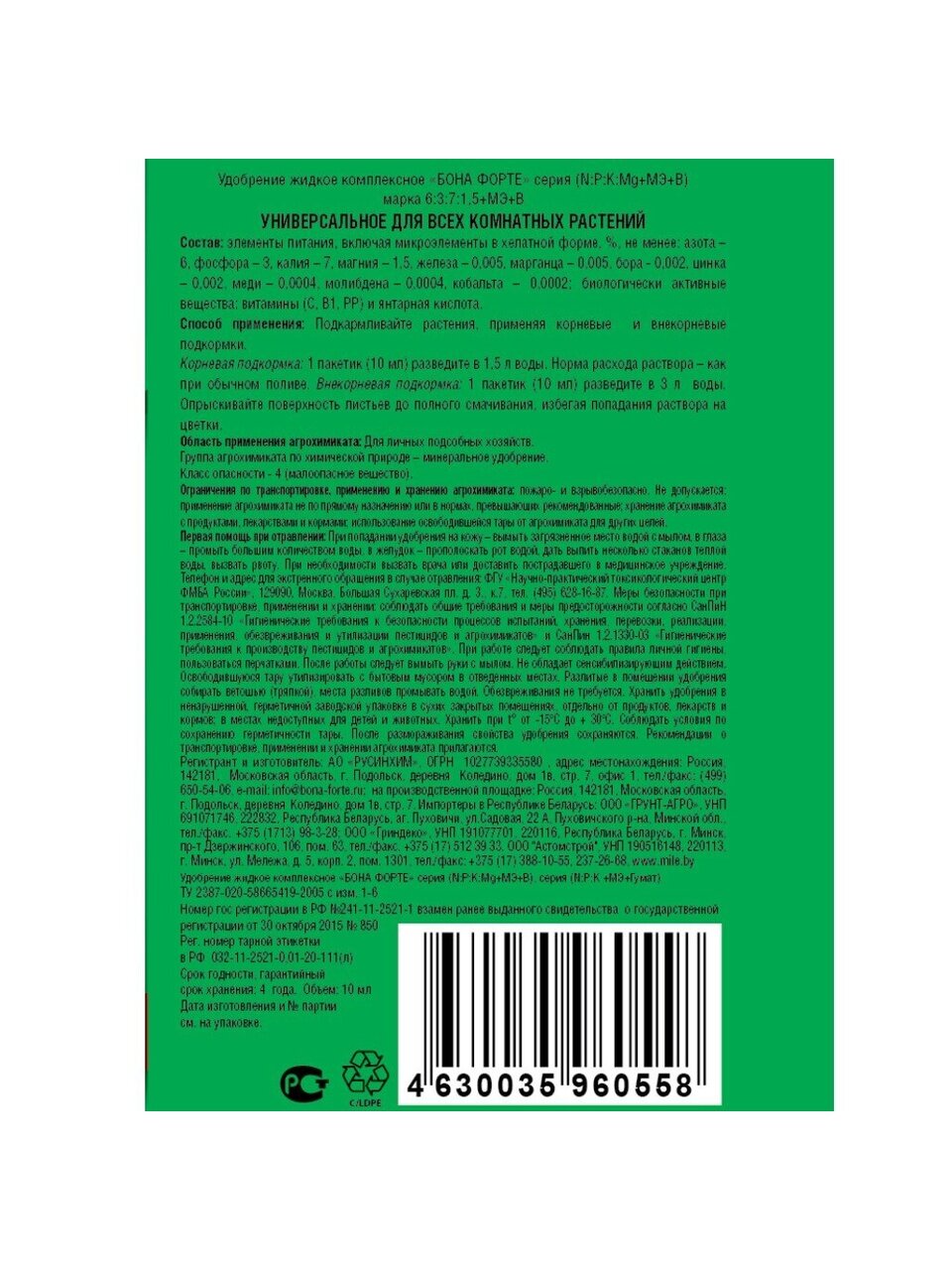 Удобр Bona Forte Красота 10 мл — идеальное решение для поддержания здоровья и роста комнатных растений круглый год. Минеральная жидкая формула способствует активному развитию и яркому цветению, подходит для любых сезонов. Компактная упаковка удобна в использовании и хранении.