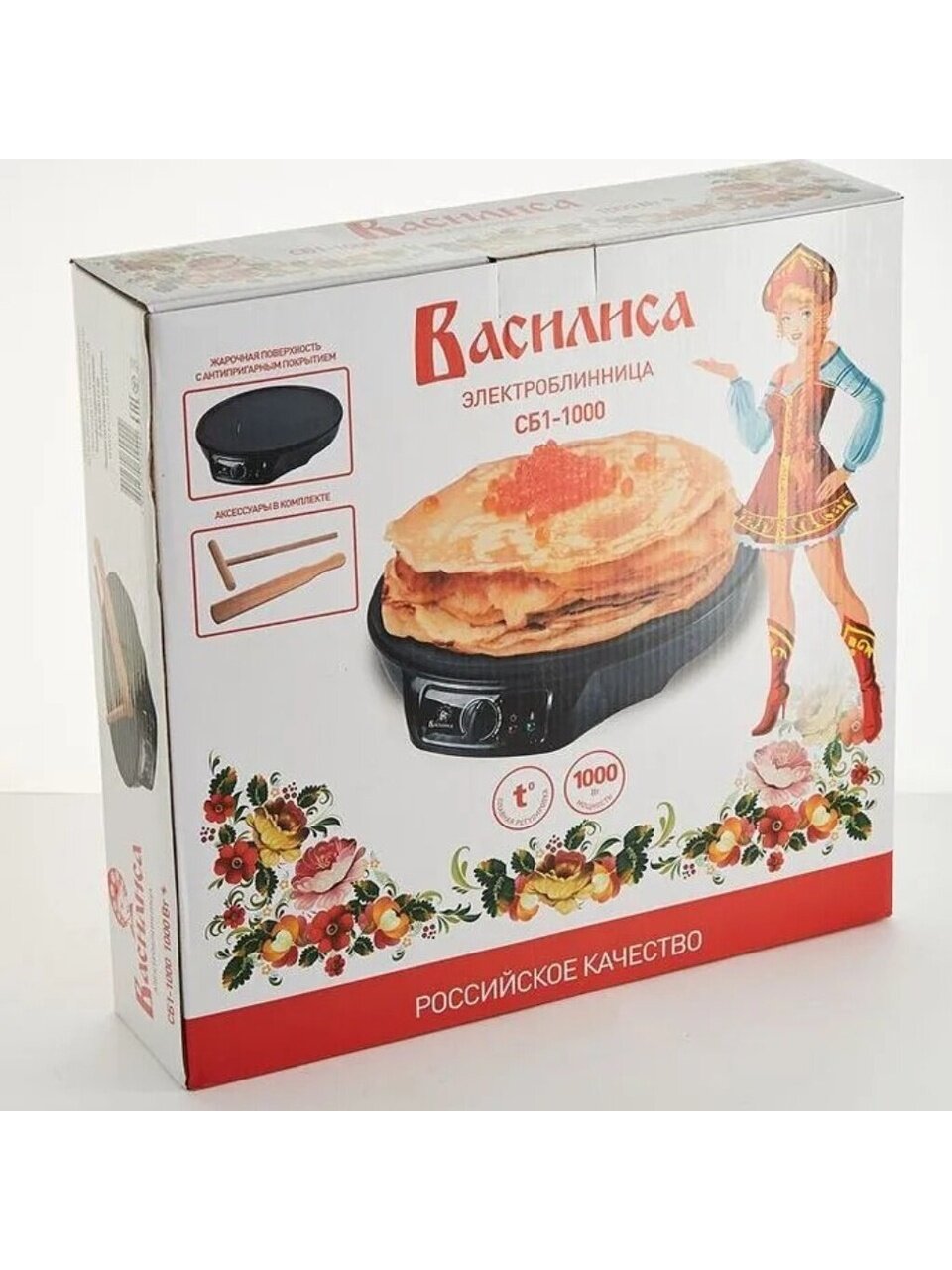 Вы можете приобрести «Блинница Василиса, СБ1-1000, 1000 Вт, черная, антипригарное покрытие» и другие товары в нашем интернет-магазине в Клинцах по низким ценам и с бесплатным самовывозом.