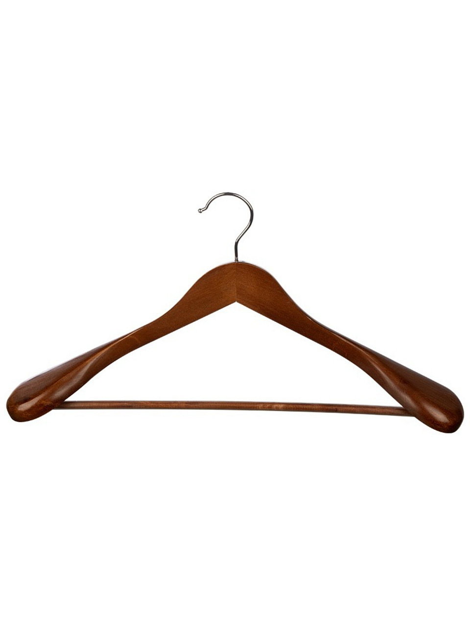 Обратите внимание на ширину: 45 см оптимально для мужских и женских пиджаков, рубашек, платьев. Дерево не деформирует ткань и сохраняет форму плеча.