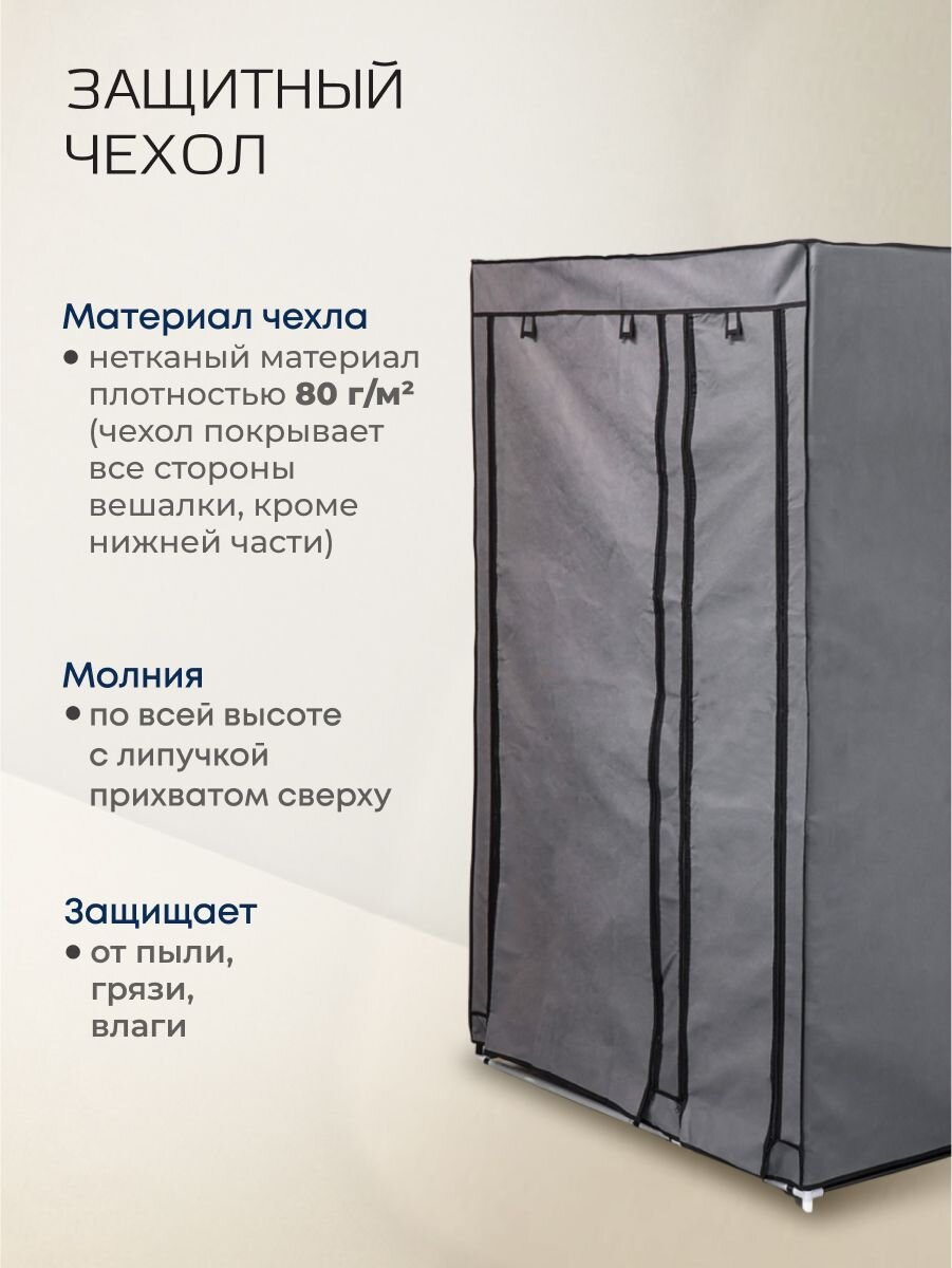 Вешалка напольная 110х45х173 см с чехлом — компактное решение для хранения одежды дома и на даче. Прочный металл, современный дизайн, защита вещей от пыли.
