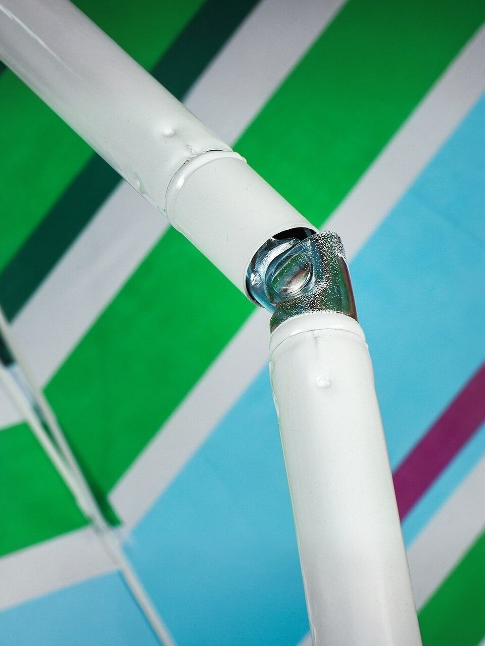 Зонт изготовлен из полиэстера и крепится к стальной стойке. Эстетичный и легкий пляжный зонт станет приятным дополнением к Вашему отдыху. Этот яркий аксессуар оградит вас от вредных солнечных излучений и ожогов. Плотный материал и надежная конструкция прослужат вам не один сезон.