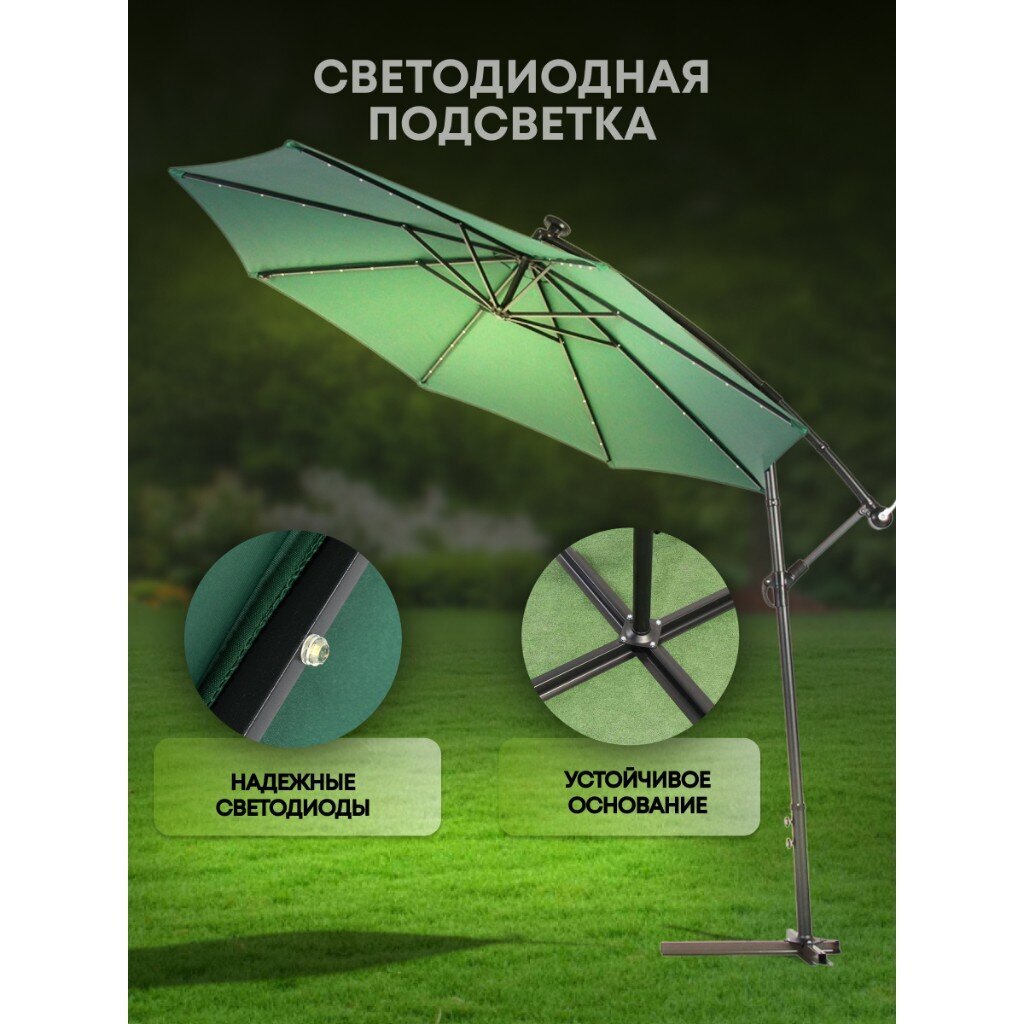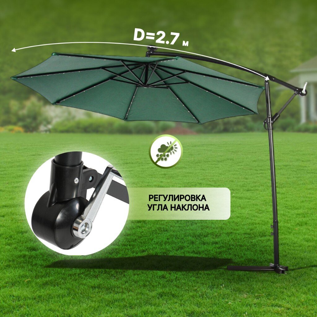 Садовый зонт 2.7х2.7 м в насыщенном зеленом цвете — стильное и практичное решение для создания уютной тени на даче, в саду или на террасе. Современный дизайн, регулируемый наклон и прочный металлический каркас обеспечивают надежную защиту от солнца и дождя, делая отдых на свежем воздухе максимально комфортным. Благодаря складной конструкции и боковой опоре зонт легко перемещается и устанавливается в нужном месте, не занимая много пространства. Прочный полиэстер купола гарантирует долговечность и устойчивость к погодным условиям, а универсальный зеленый цвет гармонично впишется в любой ландшафтный дизайн.